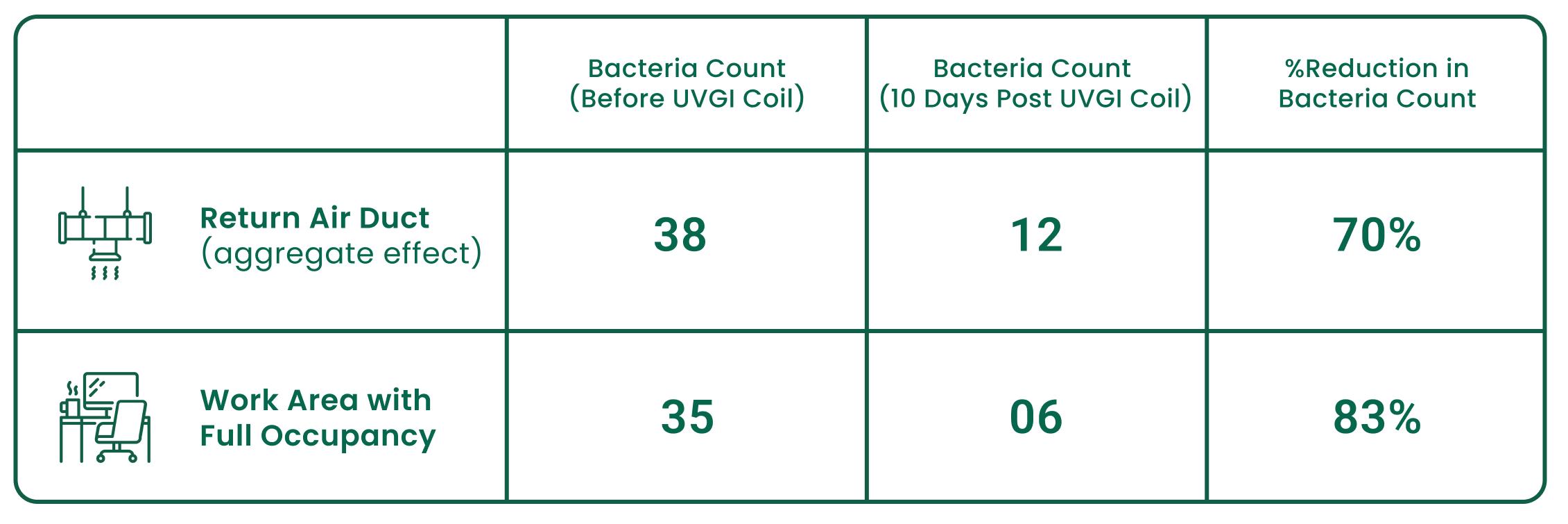 With our installed UVGI system, there is no biofilm/clog over the coil surface. Hence heat exchange goes high; thus the compressor target gets reduced to meet the required floor temperature. The AHU motor target also gets reduced with improved CFM to add energy savings.