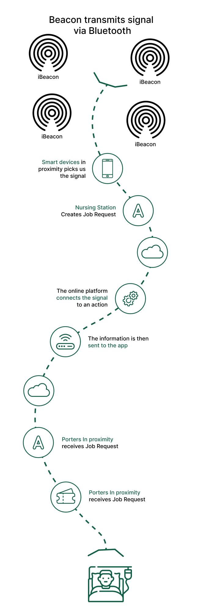 I-porter: An iBeacon-based Intelligent Porter Tracking and Hospital Management System to automate all service requests and job allocation with notable benefits like Improved productivity, Reduced labour cost, and Real-Time tracking of any type of Transport, Patient, Pharmacy, Wheelchair, or Stretcher.